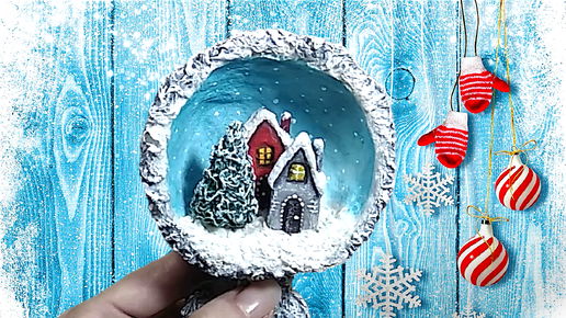 Как сделать зимнюю композицию в шаре из ваты. Новогодний декор. DIY.