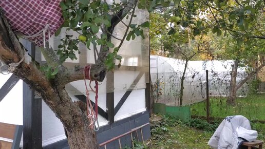 Консервация дачи на зиму началась. Закрываем открытую веранду, готовим туи к укрытию.