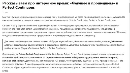 Слушайте в дороге: Рассказываем про интересное время «будущее в прошедшем» и Perfect Continuous