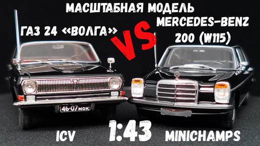 Масштабные модели Mercedes-Benz 200 (W115) и ГАЗ 24, черного цвета, 1968г, Minichamps и ICV, 1:43.