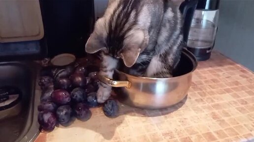 Лея с мамой варят варенье из слив