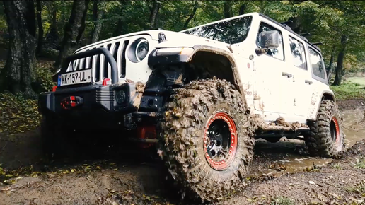 Jeep Wrangler Rubicon на MAXXIS MUD TREPADOR играючи справляется с бездорожьем