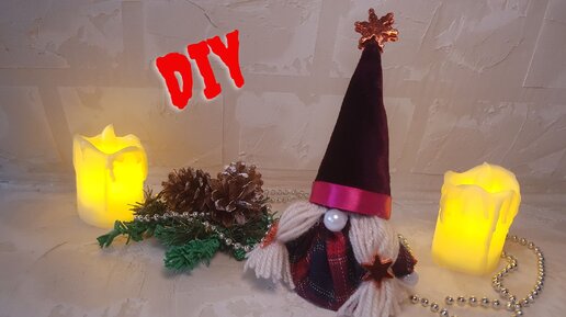 Рождественский гномик из яичного лотка и лоскутков своими руками