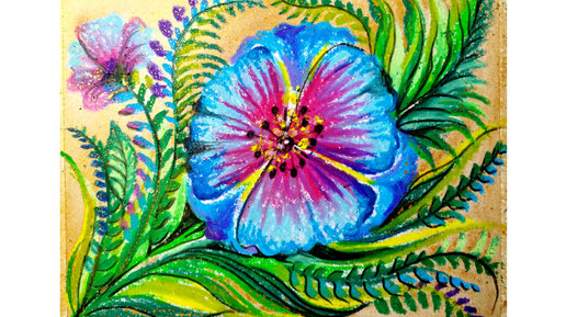 Лилово-голубой цветок. Рисунок масляной пастелью.