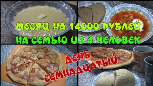 14000 на МЕСЯЦ на семью из 4-х человек.ДЕНЬ 17. /Кукурузная каша/Борщ с кабачком/пицца на дрожжевом тесте