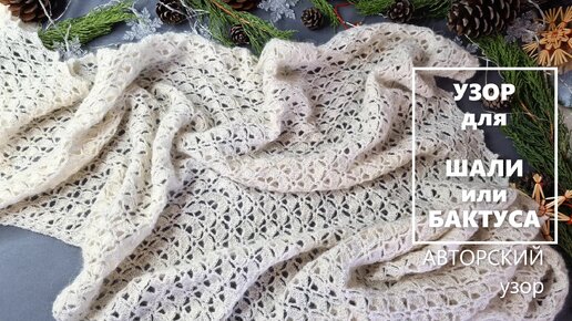 👍 АВТОРСКИЙ Узор для БАКТУСА или ШАЛИ из КОЗЬЕГО ПУХА крючком. Подробный МК