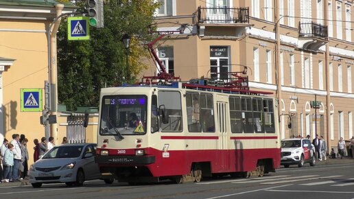 "Оборот!" Трамвай ТС-77 №3610 по маршруту №3 на Сенной площади в Санкт-Петербурге, сентябрь 2023 года