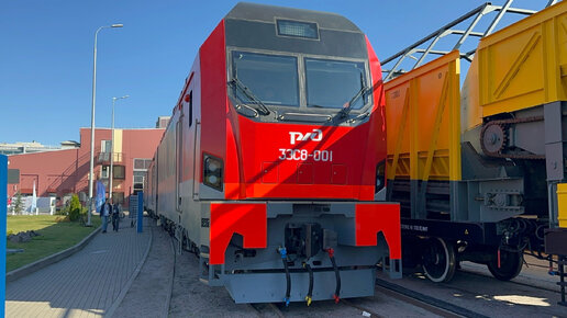 Новинка! Электровоз "Малахит" 3ЭС8 - 001, обзор кабины, машинного отделения и снаружи на ЭКСПО1520