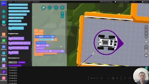 Изучаем работу датчиков цифрового двойника Омегабота в виртуальной трехмерной робо-среде "Кулибин" и немного программируем. Видео № 2