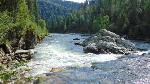 Чем знаменита река Казыр, что течёт в Кузнецком Алатау на границе Кузбасса и Хакасии? - бурный поток чистой прозрачной воды, несущейся с гор