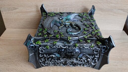 Отделка шкатулки с драконом глиной для лепки инвалидом и его женой.