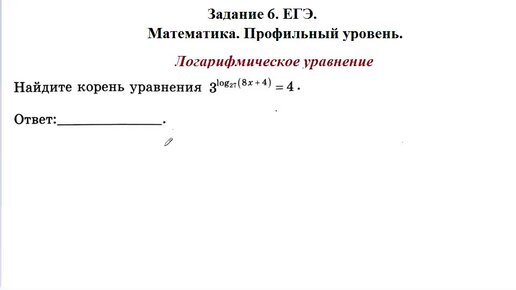 Логарифмическое уравнение. Задание №6 ЕГЭ по математике (Профильный уровень)