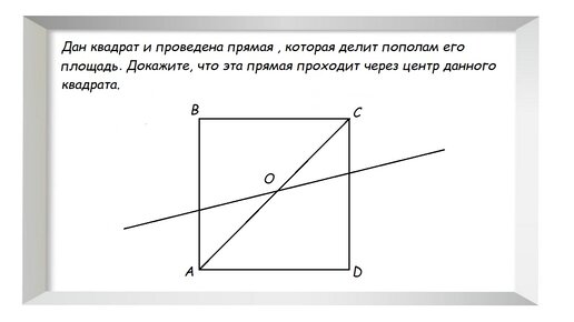 Дан квадрат и проведена прямая, которая делит пополам его площадь...