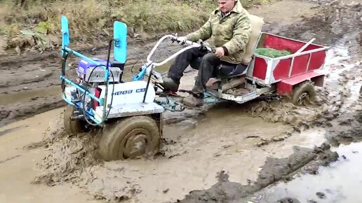Мотоблок нева МБ23 бьётся на танковой дороге