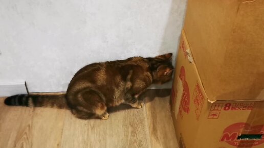 Далее: Загнал под картон игрушку и достаёт её. Порвал картонку, но своего добился.