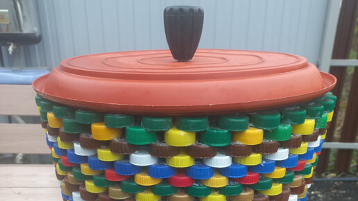 Крышек много не бывает?! Интересное мусорное ведро из крышек на дачу.
