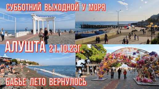 Алушта/БАБЬЕ ЛЕТО☀вернулось/ВСЕ на море🌊люди🏊пляж/Звучит аккордеон на Центральной/Обстановка в Крыму