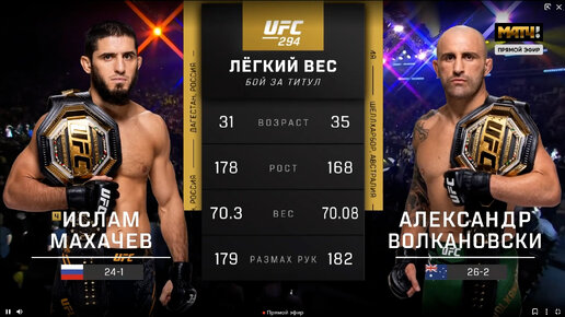 UFC 294. Ислам Махачев vs Александр Волкановски. НОКАУТ!