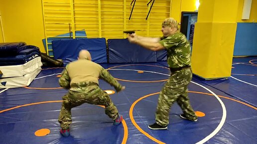 Угроза оружием сбоку справа на дистанции. В. Н. Крючков