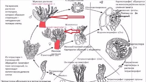 Жизненный цикл Красных водорослей. На схеме с разъяснением, понятно