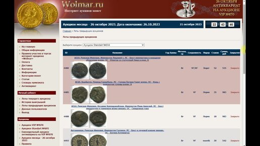 ОБЗОР Wolmar АУКЦИОН Standart №694 МОНЕТЫ от 25 октября 2023г.