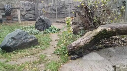 Амурская тигрица гуляет по вольеру.