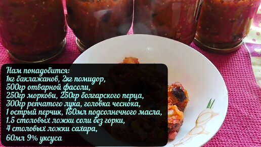 Салат-закуска на зиму с баклажанами и фасолью