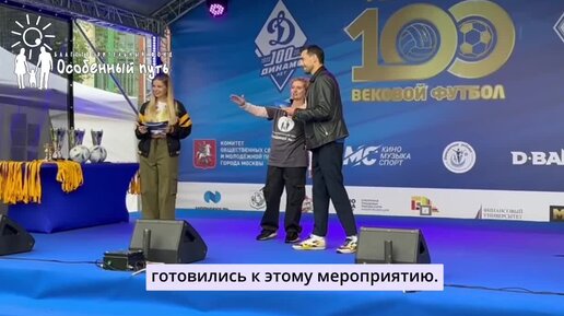 Дарья Ганеева представляет своих подопечных на турнире «Вековой футбол». БФ "Особенный путь".