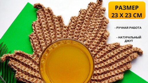 Набор салфеток ручной работы вязаных из джута "Кленовые листья" для сервировки стола, 3 шт.