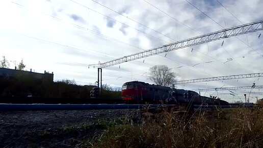 2ТЭ116У-0015. Рвёт с места тяжёлый поезд на подъём. Станция Голиковка. Петрозаводск.