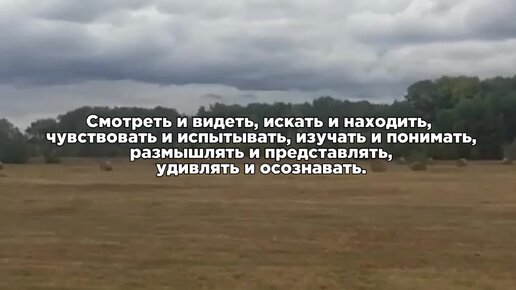 Смотреть и видеть, искать и находить, чувствовать и испытывать, изучать и понимать, размышлять и представлять, удивлять и осознавать.