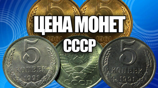 Какая цена сегодня у советских монет 5 копеек 1961-1991, посмотрите такие монеты у себя дома, найдете монеты СССР - заработаете