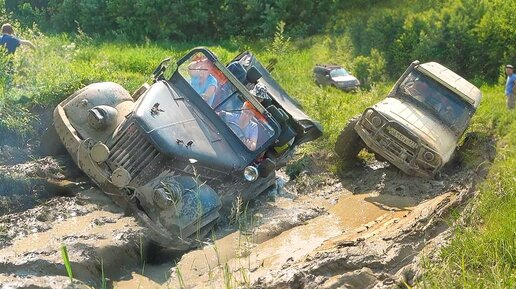 Что творят Москвичи на оффроуде Нива на 33 колёсах против Уаз и ГАЗ 69 из СССР на бездорожье