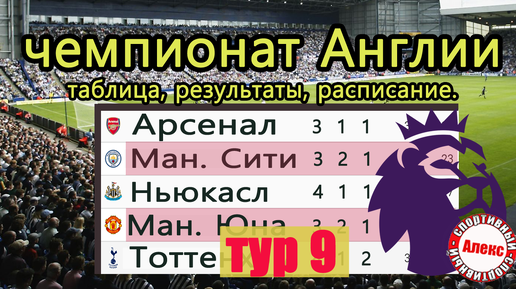 Чемпионат Англии (АПЛ). 9 тур. Результаты, расписание, таблица.