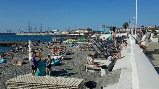 Пляж Маяк: готовясь к зиме, шезлонги и навесы меняют на кресла и качели, а люди продолжают купаться