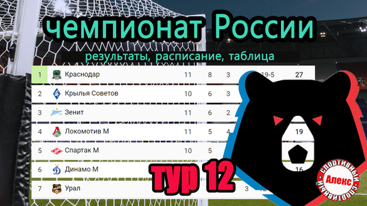 Чемпионат России (РПЛ). 12 тур. Результаты. Расписание. Таблица.