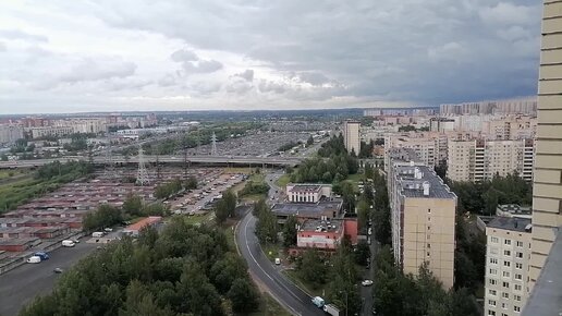 Санкт-Петербург вид с 18 этажа ул. Ворошилова 33 на пути Ладожского вокзала и на Российский проспект снято 23.07.2023г