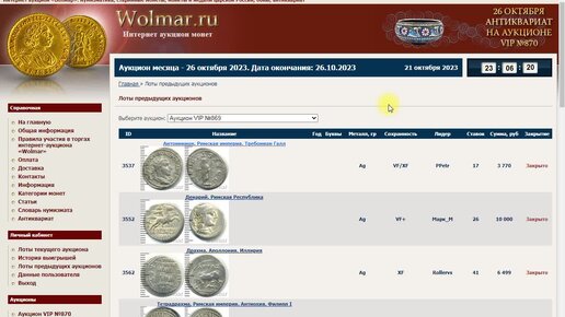 ОБЗОР Wolmar АУКЦИОН VIP №869 МОНЕТЫ от 19 октября 2023г.