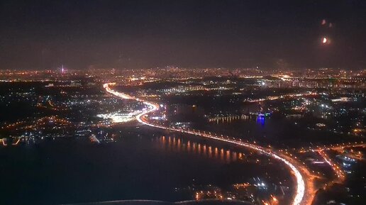 Ночная Москва из иллюминатора самолета. Посадка в Шереметьево