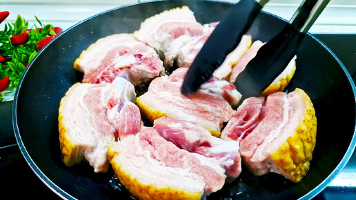 Секрет идеальной свиной грудинки с луком на сковороде! Как приготовить восхитительную свиную грудинку за минимум времени!