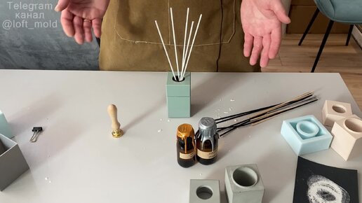 Аромадиффузор из гипса. Молд «МФ60 V2 квадратный» с бутылочкой. Силиконовая форма для диффузора