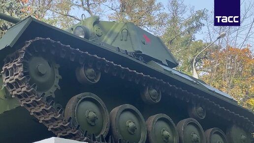 В Мелитополе установили на постамент отреставрированный танк Т-70