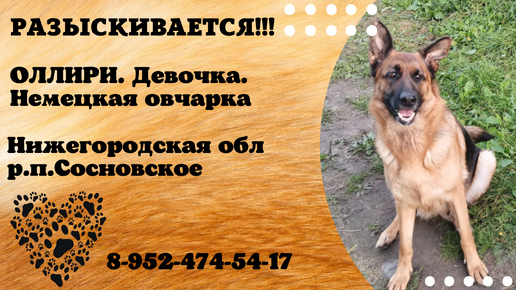 Пропала собака ! ОЛЛИРИ , Немецкая овчарка , Нижегородская область , р.п. Сосновское