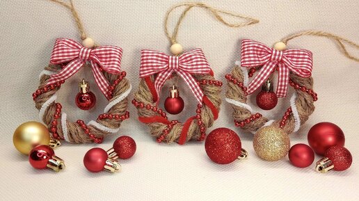🎄🎀Мини веночек из джута. ❄️Красивое ёлочное украшение своими руками.