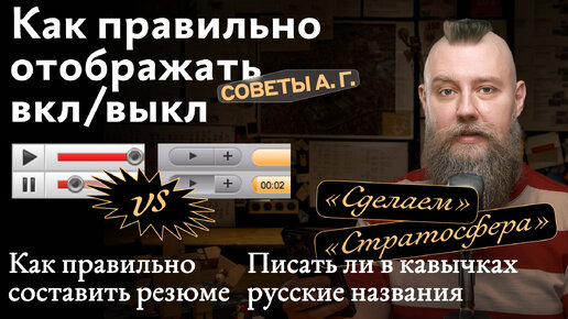 Советы А. Г. Отображение вкл/выкл, правильное резюме и русские названия в кавычках