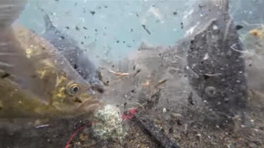Здоровые караси, сазаны пожирают опасный корм с крючками. Зрелищное подводное видео !!
