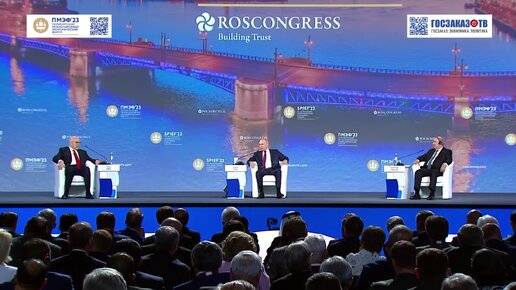 ПМЭФ 2023: Пленарное заседание. Путин Владимир, Президент Российской Федерации, Абдельмаджид Теббун, Президент Алжира.