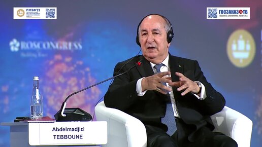 ПМЭФ 2023: Пленарное заседание. Путин Владимир, Президент Российской Федерации, Абдельмаджид Теббун, Президент Алжира.