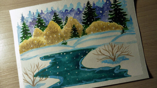 Рисуем первый снег: как очень просто нарисовать пейзаж с первым снегом