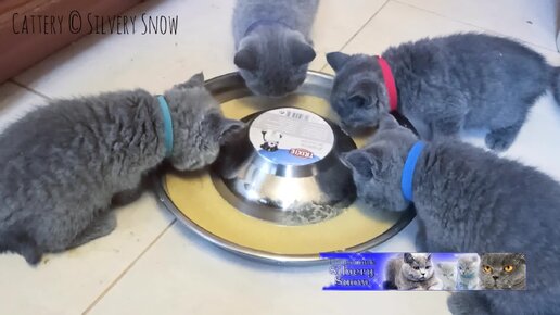 Игры играми, а еда по расписанию! Британские котята дружным коллективом за ужином.